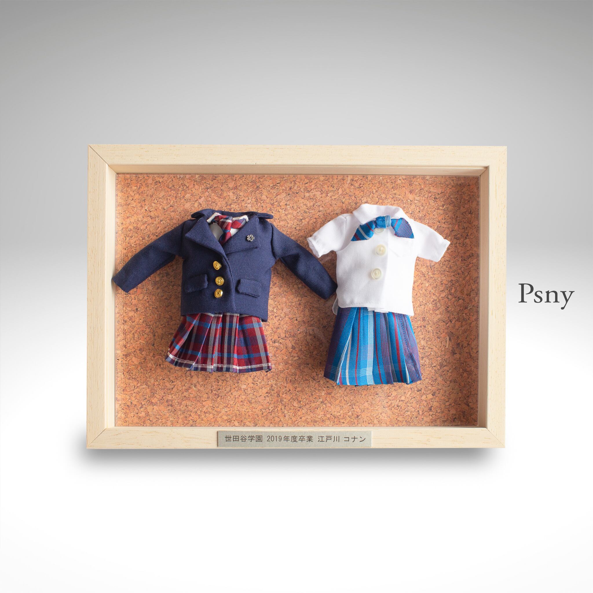 ミニサイズの制服を2セット(冬服・夏服)をフレームにいれました。